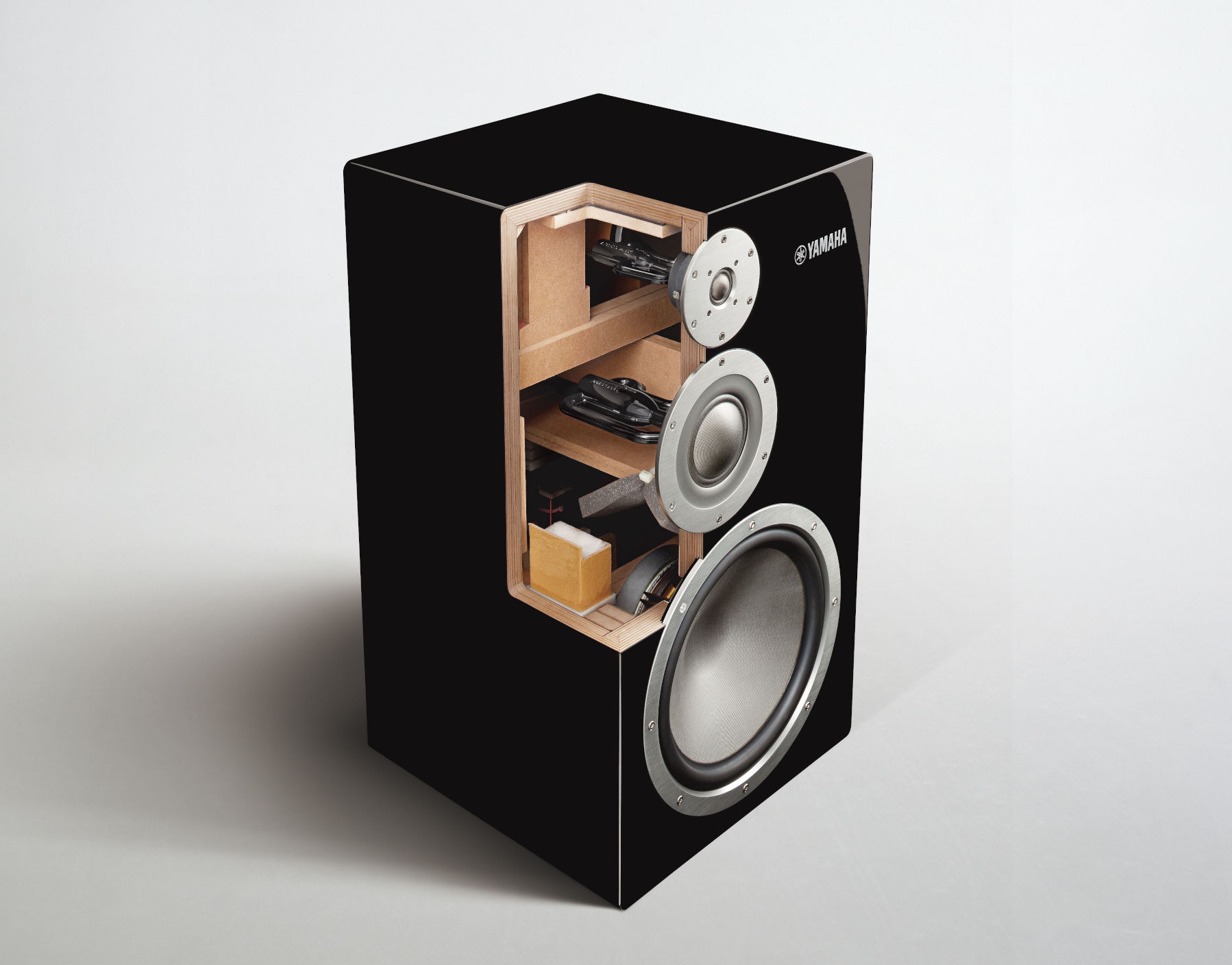 La finition Piano Black des Yamaha NS-5000 est réalisée selon le même procédé que les pianos de concert Yamaha, avec 11 couches de laque polie à la main. Le coffret, rigoureusement conçu en contreplaqué de bouleau d’Hokkaido, travaille en synergie avec les chambres R.S. pour contrôler les résonances et offrir une restitution musicale pure et naturelle.
